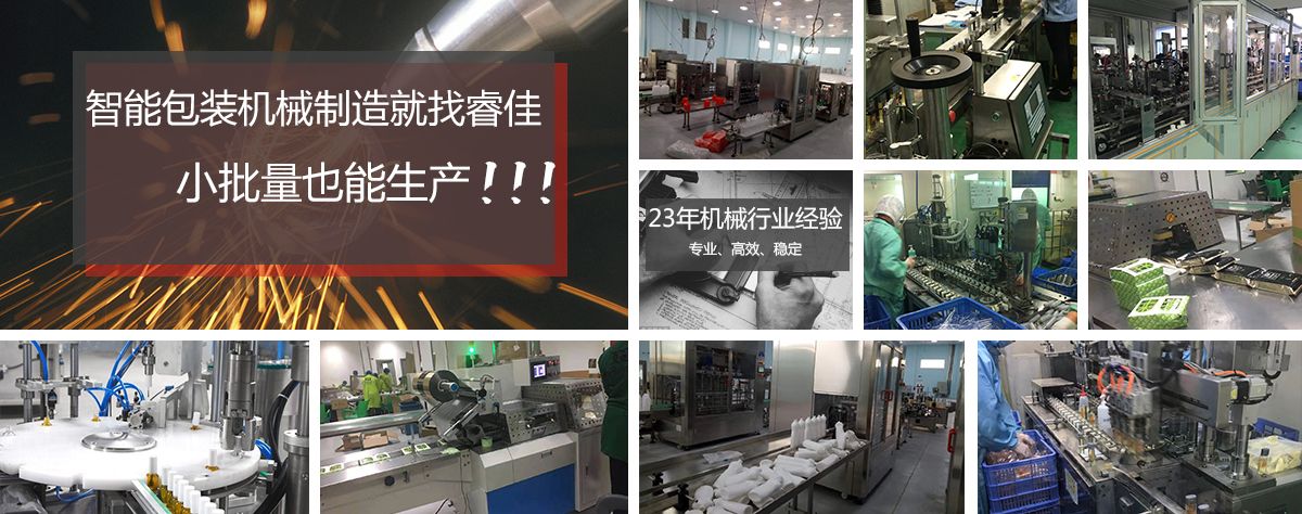 廣州市睿佳機(jī)械設(shè)備有限公司是國內(nèi)專業(yè)從事自動化包裝機(jī)械產(chǎn)品,集研發(fā)、生產(chǎn)、銷售、服務(wù)于一體的制造公司,已通過ISO9001:2008質(zhì)量體系認(rèn)證,部分系列產(chǎn)品已通過歐盟CE認(rèn)證。 經(jīng)過多年的發(fā)展,公司專業(yè)生產(chǎn):封尾機(jī),灌裝機(jī),旋蓋機(jī),貼標(biāo)機(jī),包裝機(jī),輸送機(jī),噴碼機(jī),灌裝生產(chǎn)線等機(jī)械設(shè)備。企業(yè)以開發(fā)生產(chǎn)包裝機(jī)械和訂做特殊包裝機(jī)械為主,所生產(chǎn)的包裝機(jī)械在同行和客戶中都得到一致的贊賞,以高技術(shù)和穩(wěn)定的質(zhì)量遠(yuǎn)銷東南亞和歐美。在國內(nèi),也成為多家知名藥廠、食品廠、化妝品廠指定使用產(chǎn)品。 睿佳機(jī)械:“想客戶之所想,急客戶之所急”既是睿佳對廣大客戶的承諾也是睿佳的宗旨,睿佳將與時代同步、銳意進(jìn)取,以更優(yōu)質(zhì)的服務(wù)回報廣大客戶對睿佳的信賴和支持。